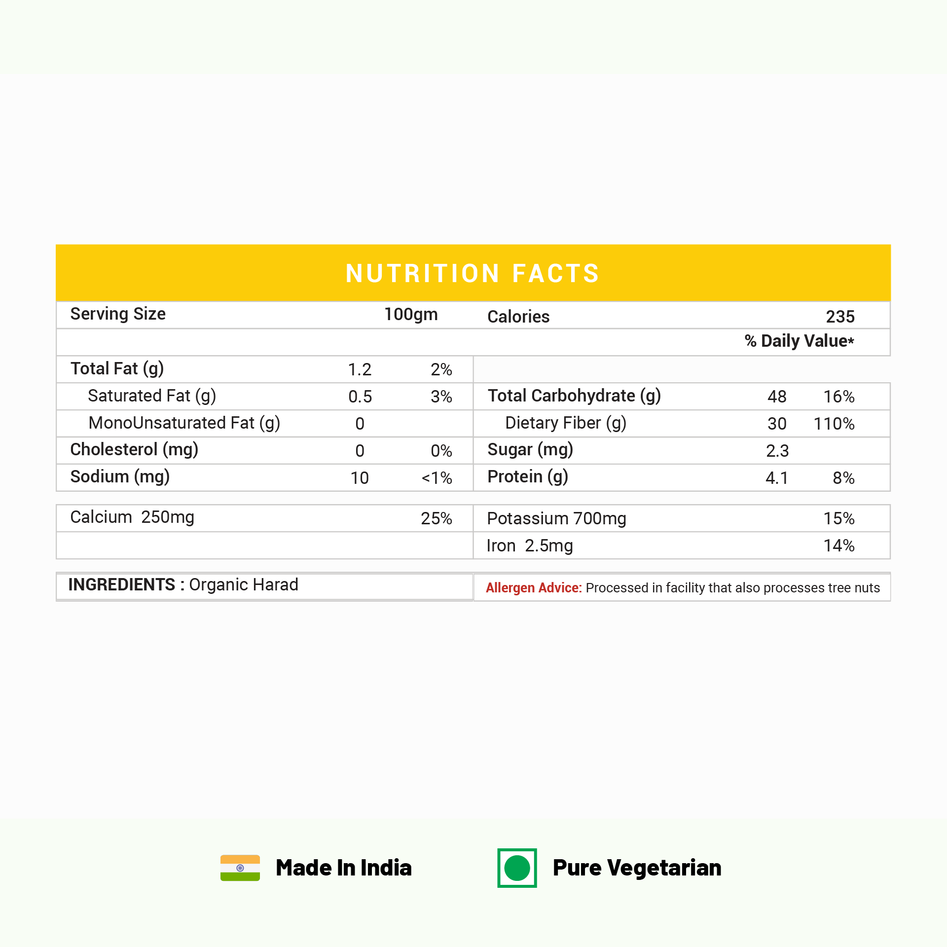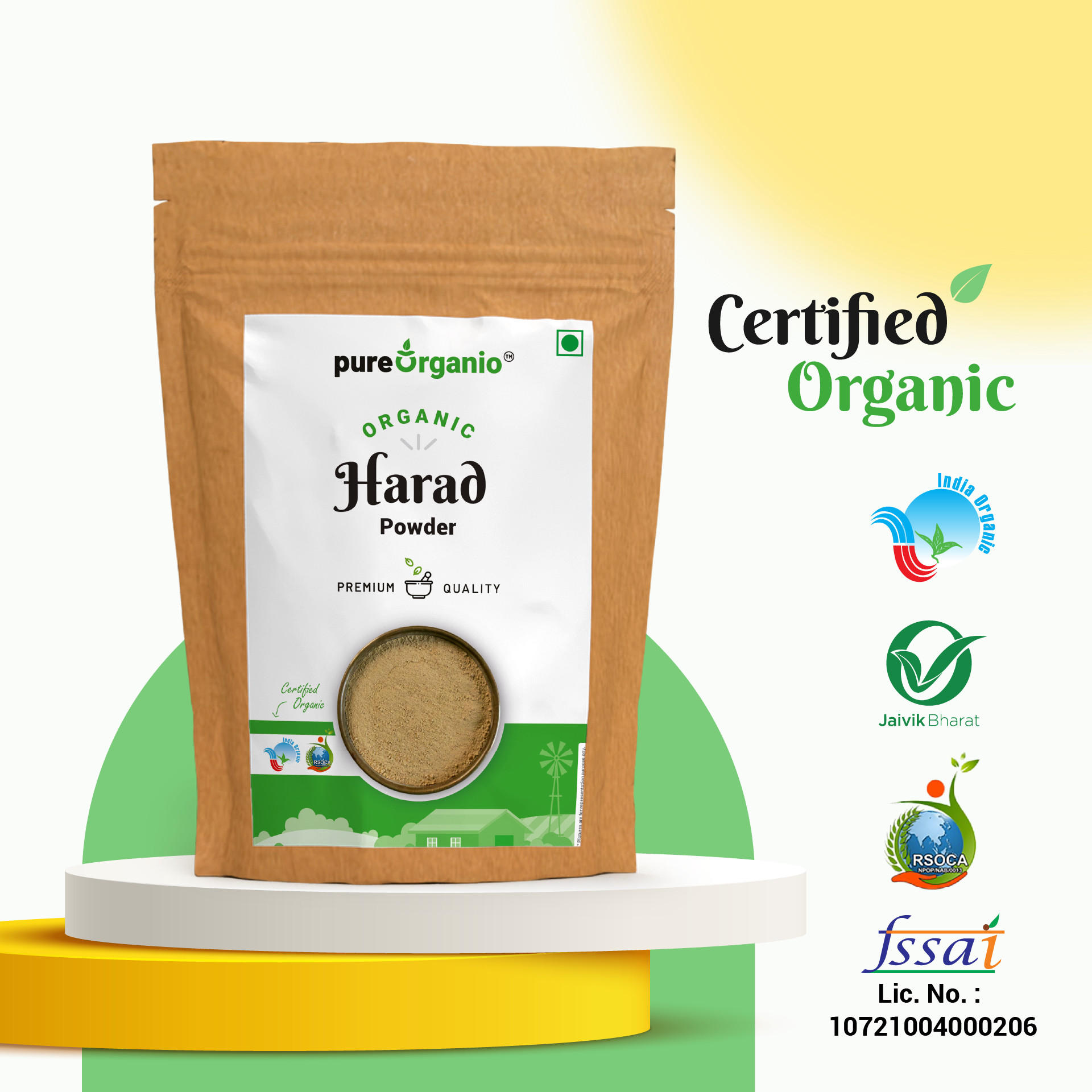 Pure Organio Organic Harad Powder | Haritaki Powder | Terminalia Chebula | Kadukkai Podi | Karakkaya Pudiyamu | 100% Natural & NPOP Indian Organic Certified